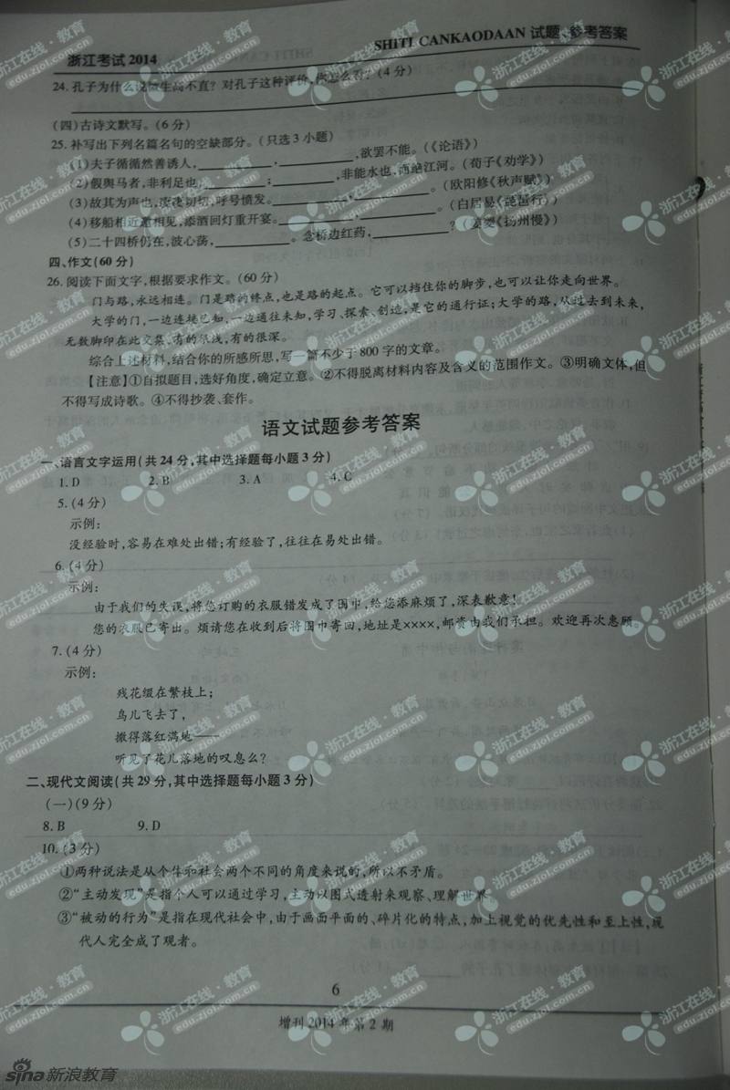 2014年浙江高考语文真题及答案(高清图片版)(6)