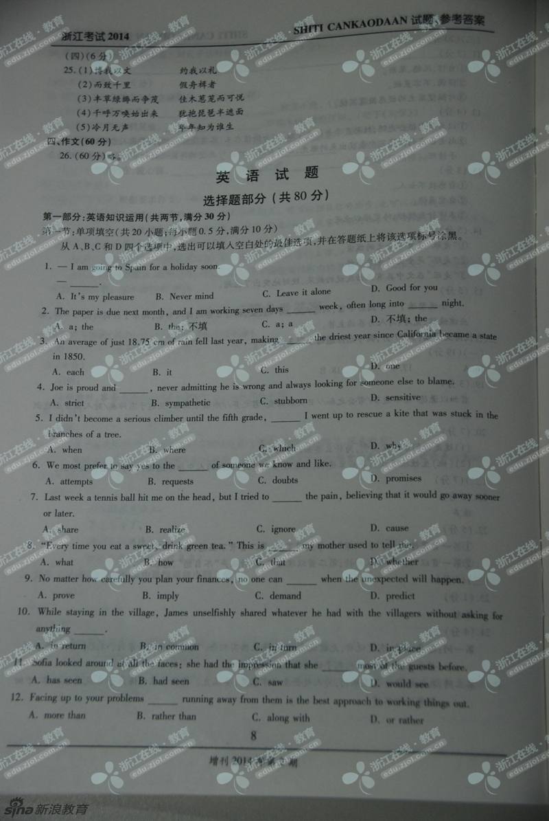 2014年浙江高考语文真题及答案(高清图片版)(8)