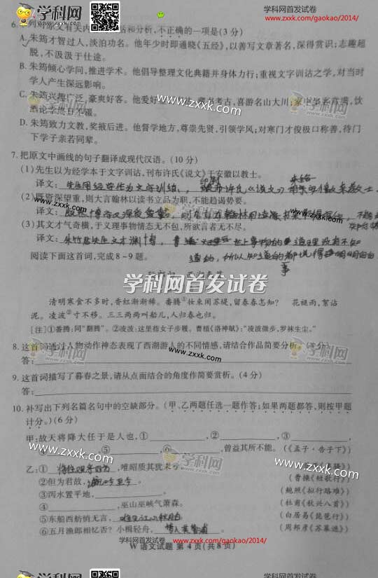 首发2014年安徽高考语文真题及答案(清晰版)(7)