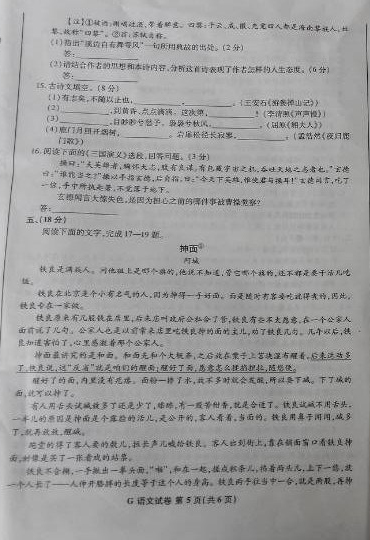 2014年江西高考语文真题及答案(图片版)(5)