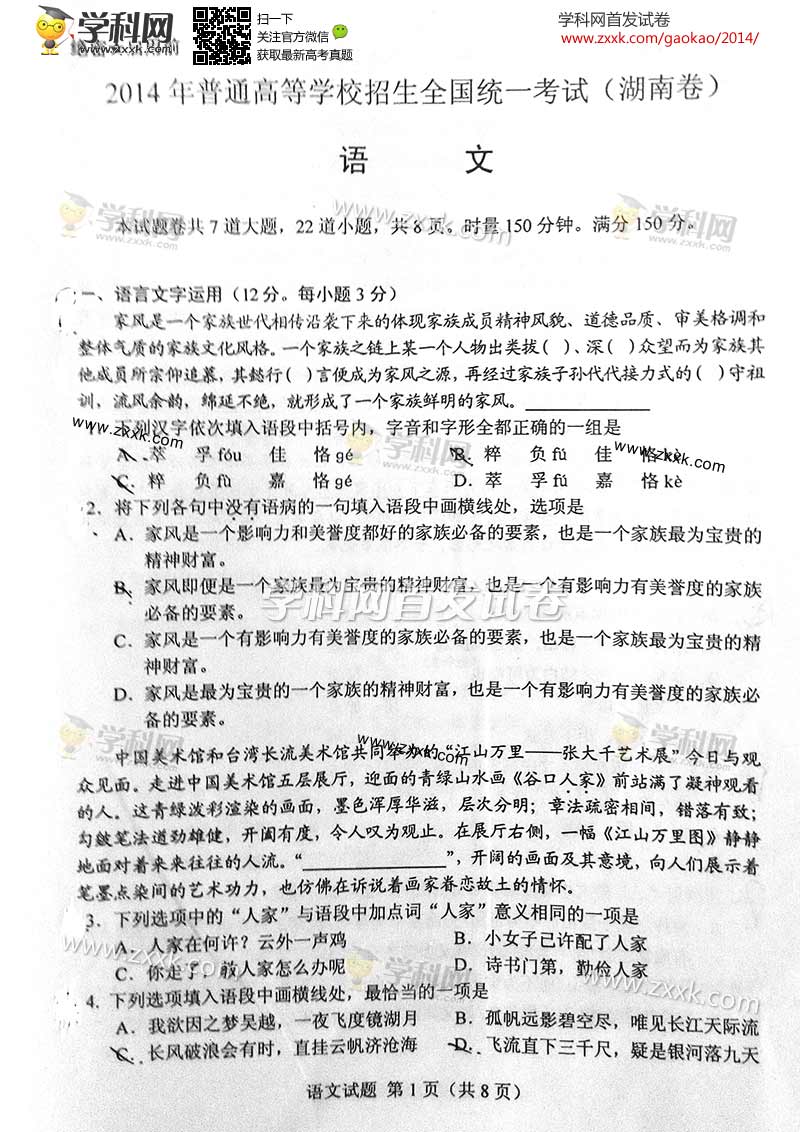 6月7日就是全国统一高考的时间,距离高考不足24个小时的时间里,育路高考网小编提醒考生一定要保持良好的心态,不要急躁。育路高考网首发2014年湖南高考语文真题及答案,高考过后及时发布最新的高考真题及答案解析,敬请期待!