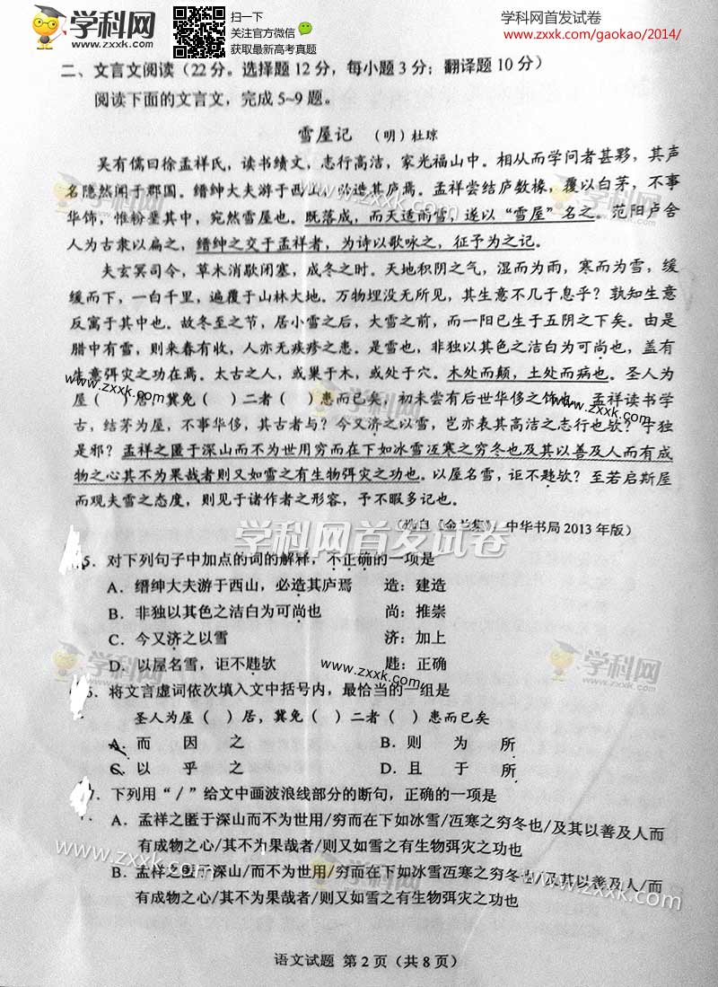 2014年湖南高考语文真题及答案(图片版)(2)