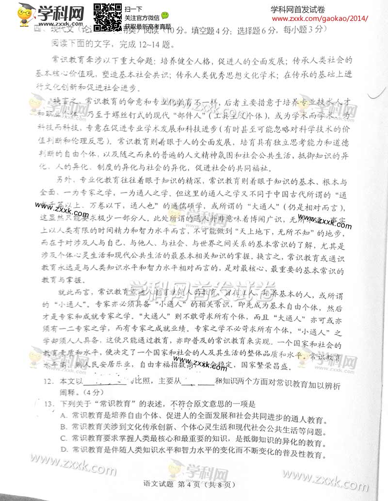 2014年湖南高考语文真题及答案(图片版)(4)