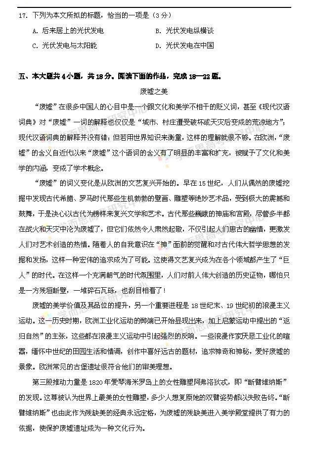 首发2014年北京高考语文真题及答案(清晰版)(7)