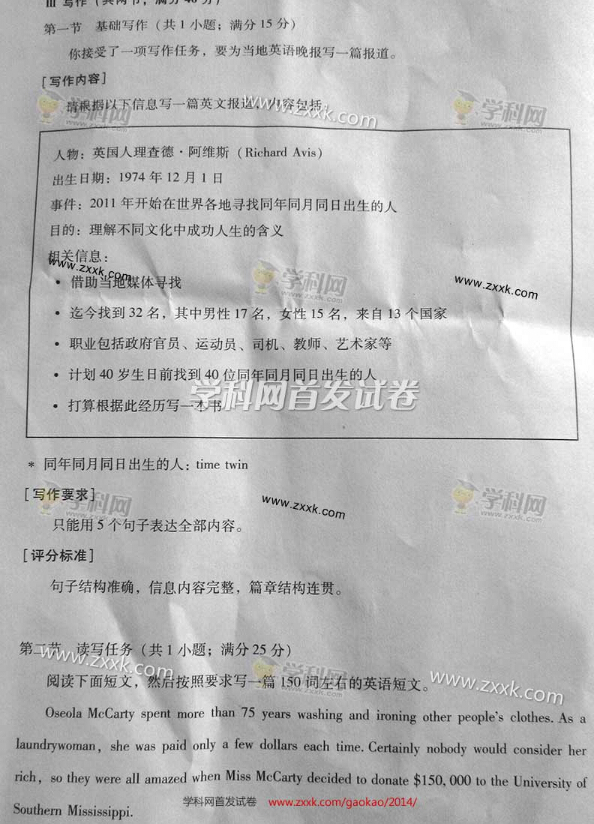 首发2014年广东高考英语真题及答案(清晰版)(11)