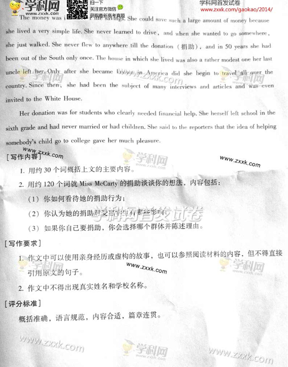 点击查看更多省份:2014年全国高考试题及答案 2014年高考成绩查询及录取控制分数线