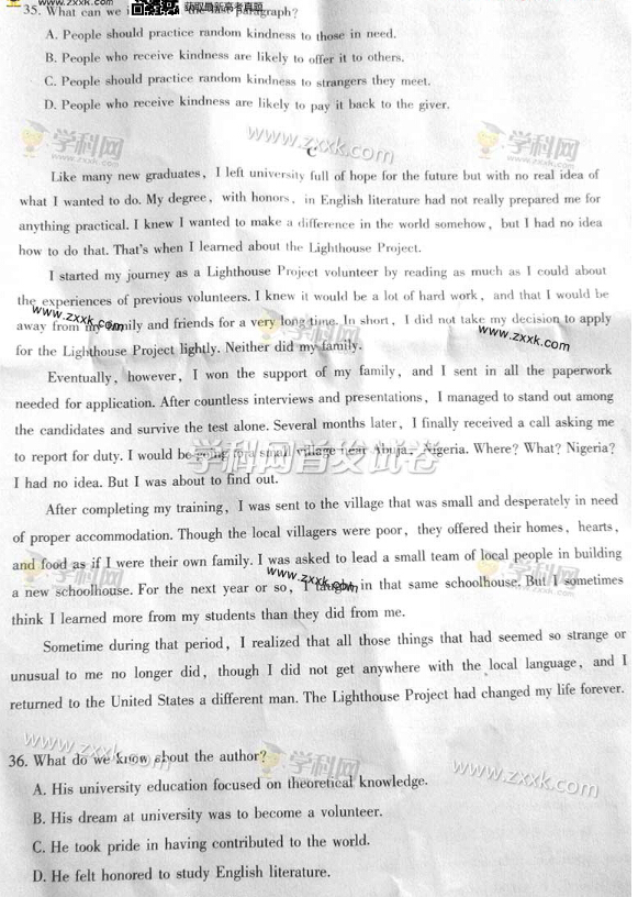 首发2014年广东高考英语真题及答案(清晰版)(6)