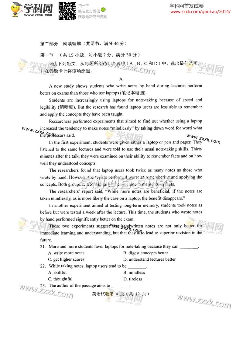 2014年辽宁高考英语真题及答案(图片版)(3)