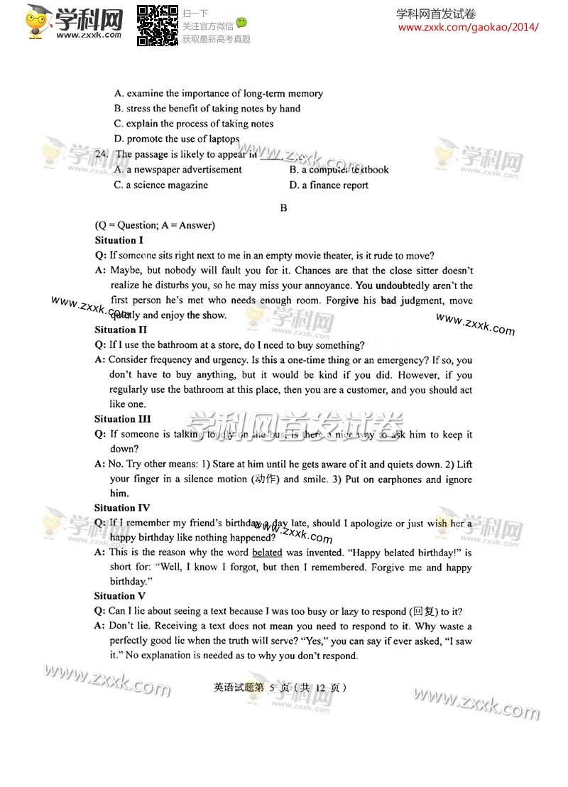 2014年辽宁高考英语真题及答案(图片版)(4)
