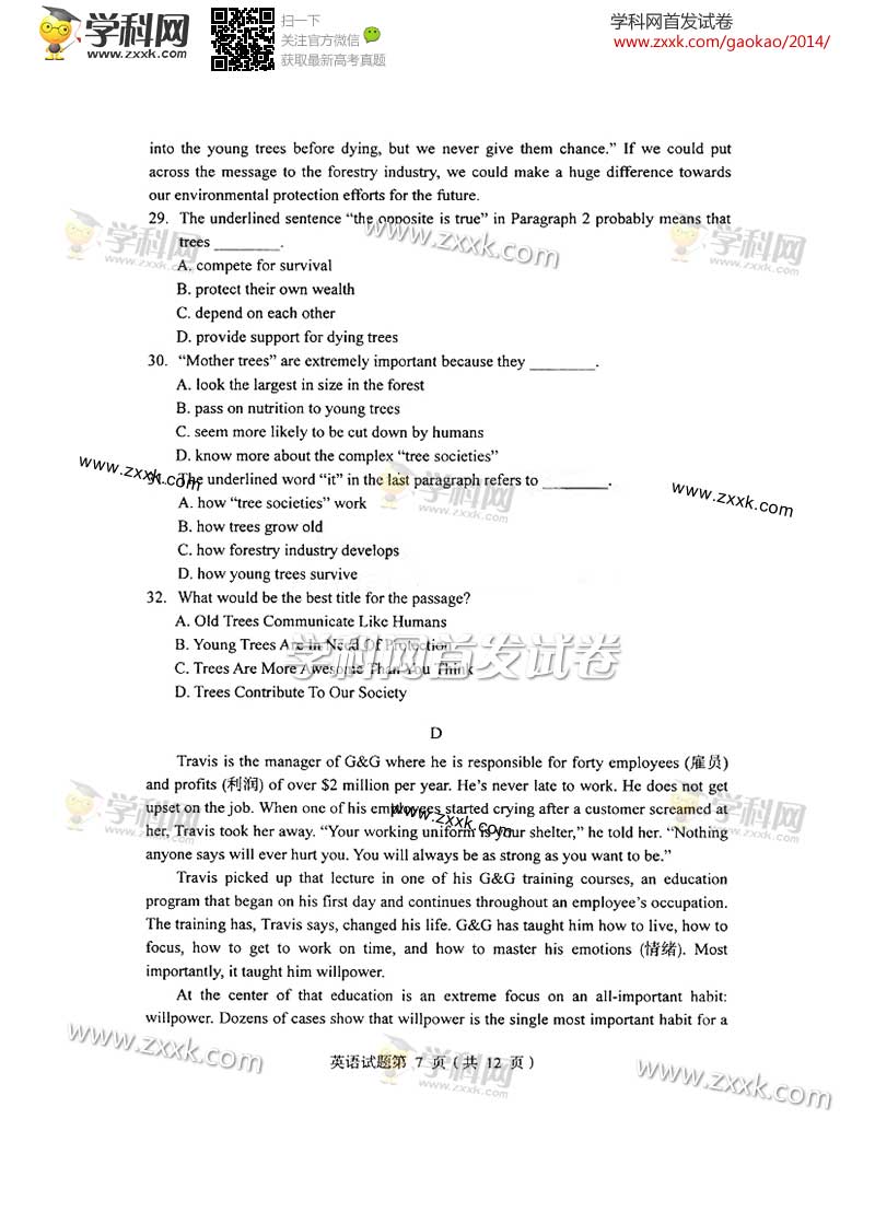 2014年辽宁高考英语真题及答案(图片版)(6)