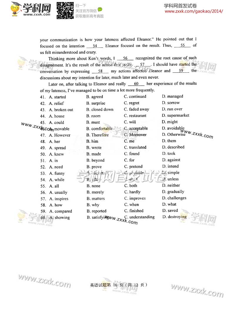 2014年辽宁高考英语真题及答案(图片版)(9)