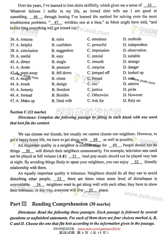 首发2014年湖南高考英语真题及答案(清晰版)(5)