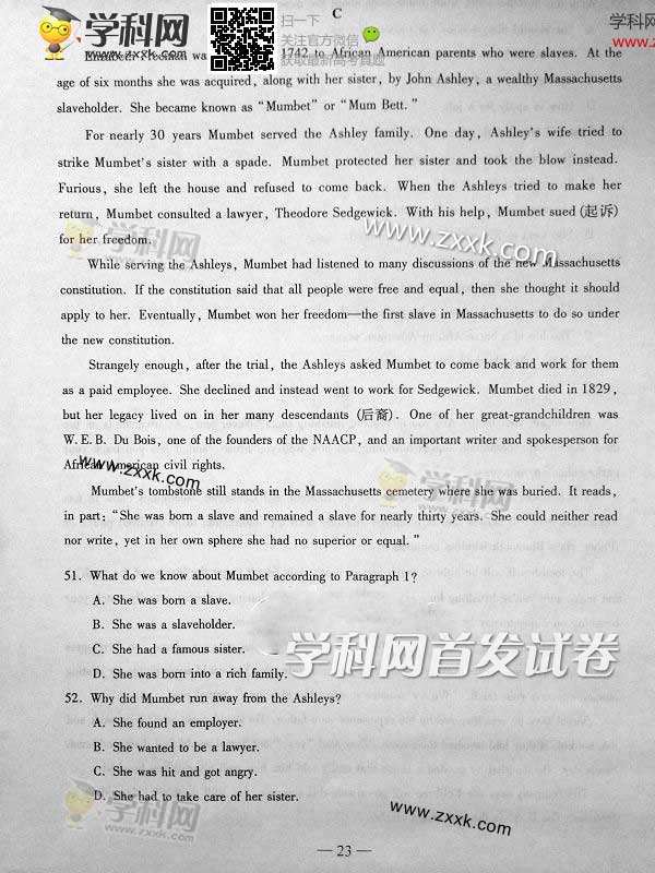2014年山东高考英语真题及答案(图片版)(7)