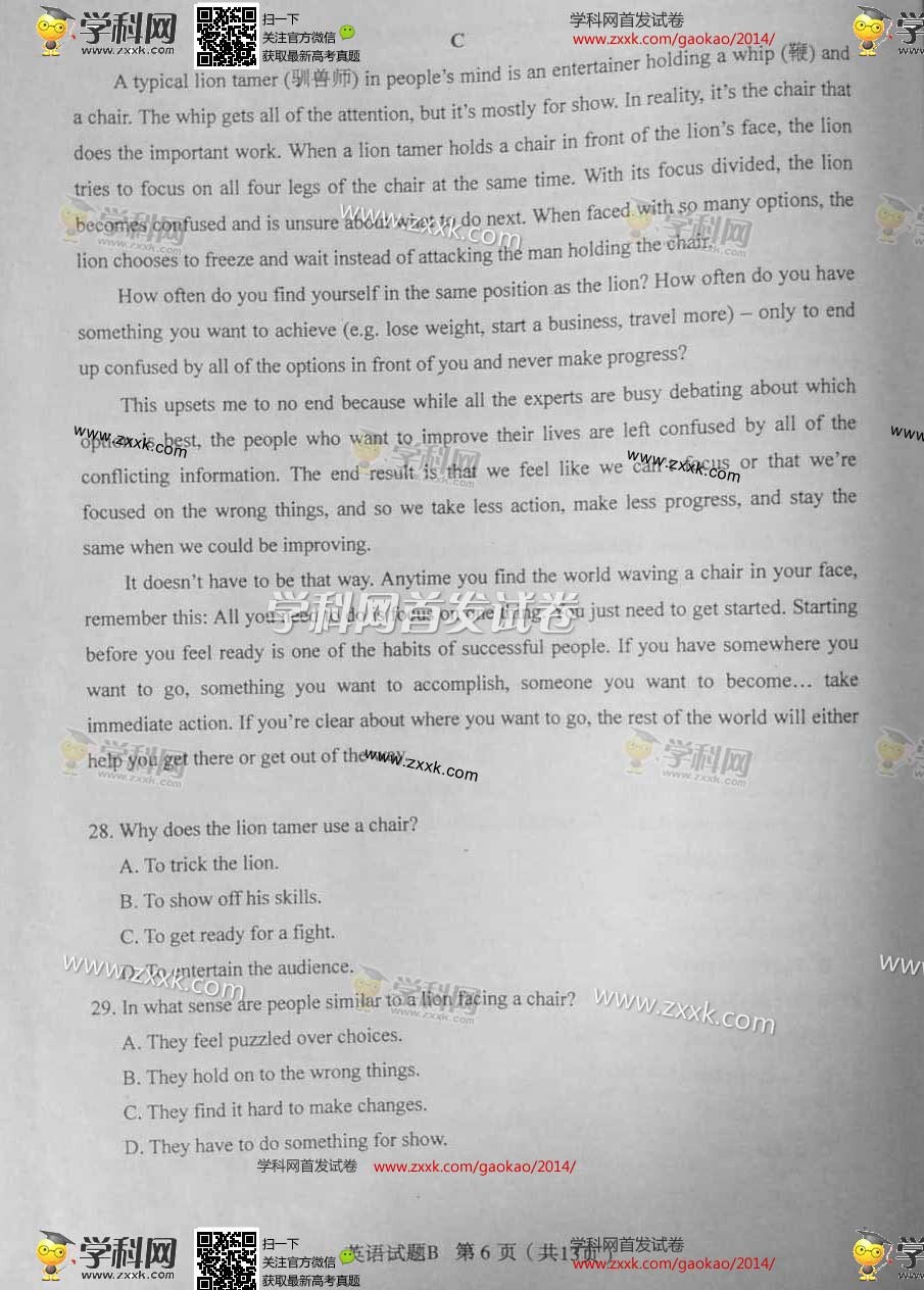 2014年河南高考英语真题及答案(图片版)(6)