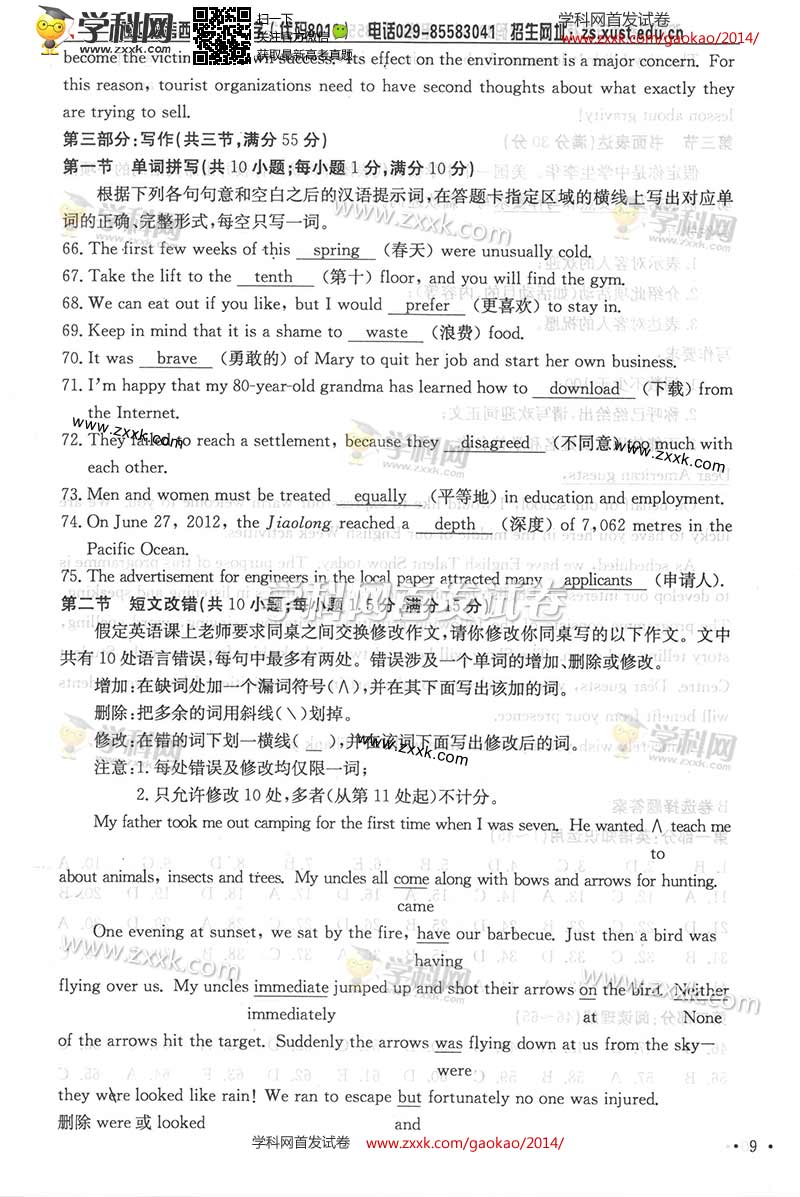 2014年陕西高考英语真题及答案(图片版)(9)