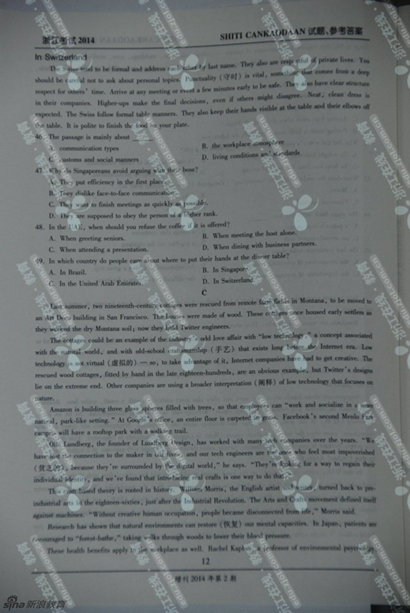 2014年浙江高考英语真题及答案(高清图片版)(5)