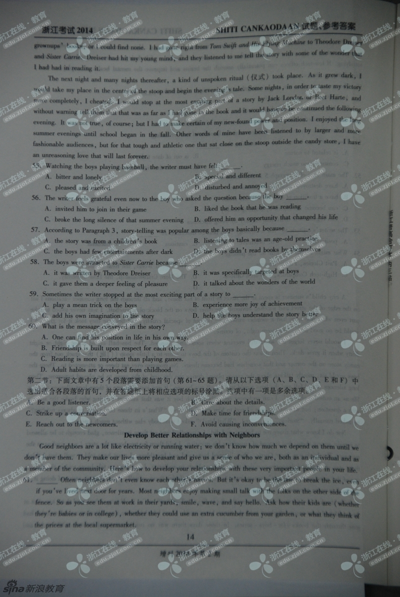 2014年浙江高考英语真题及答案(高清图片版)(7)
