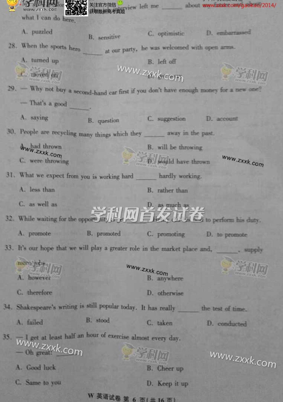 首发2014年安徽高考英语真题及答案(清晰版)(6)