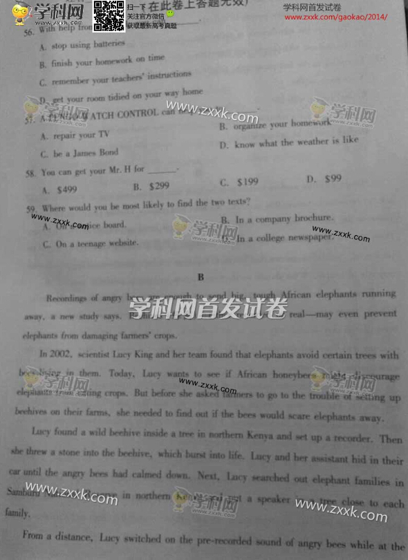首发2014年安徽高考英语真题及答案(清晰版)(9)