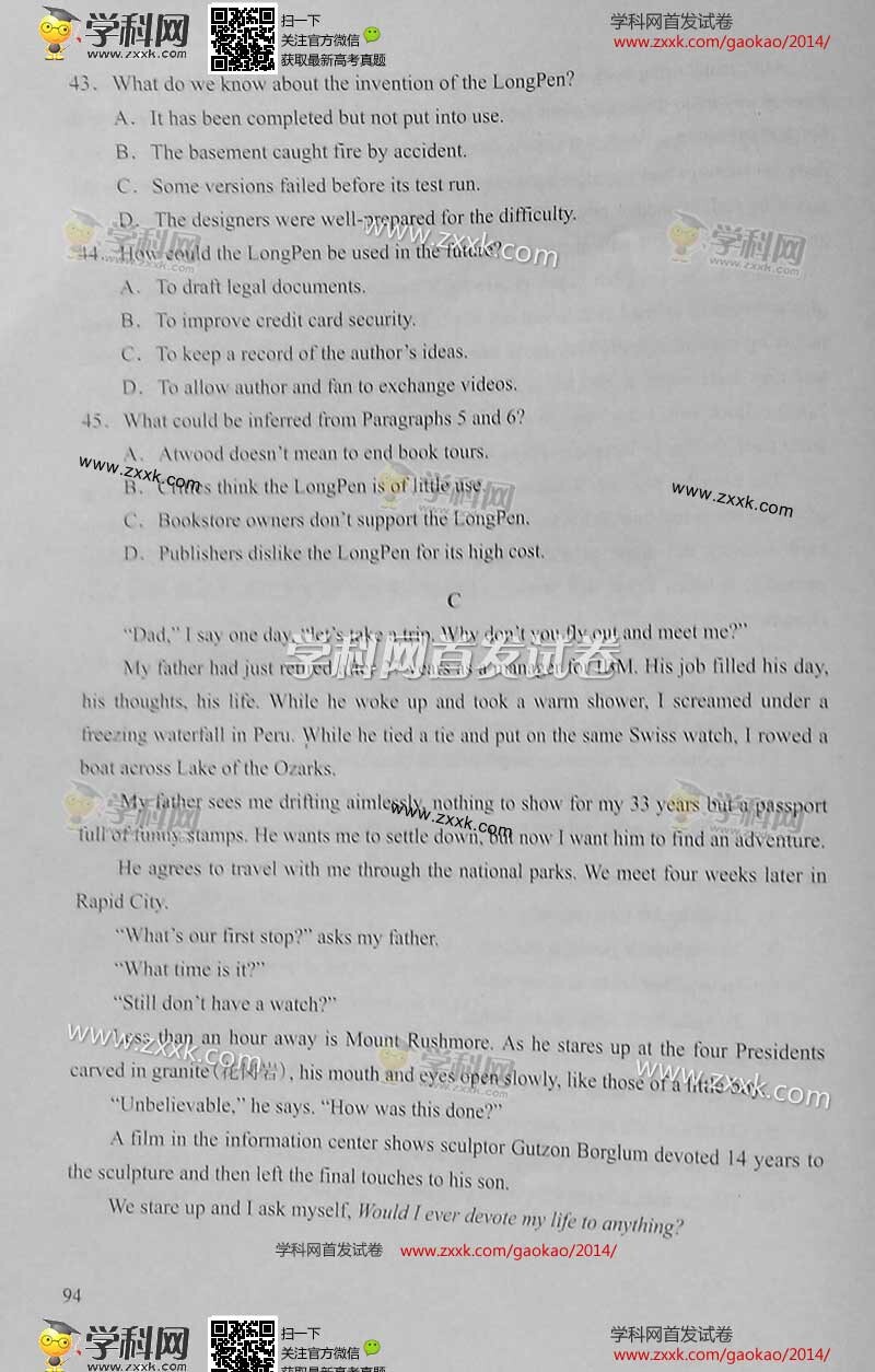 2014年天津高考英语真题及答案(图片版)(7)