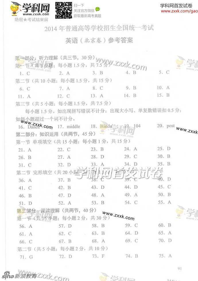 首发2014年北京高考英语真题及答案(图片高清版)(17)