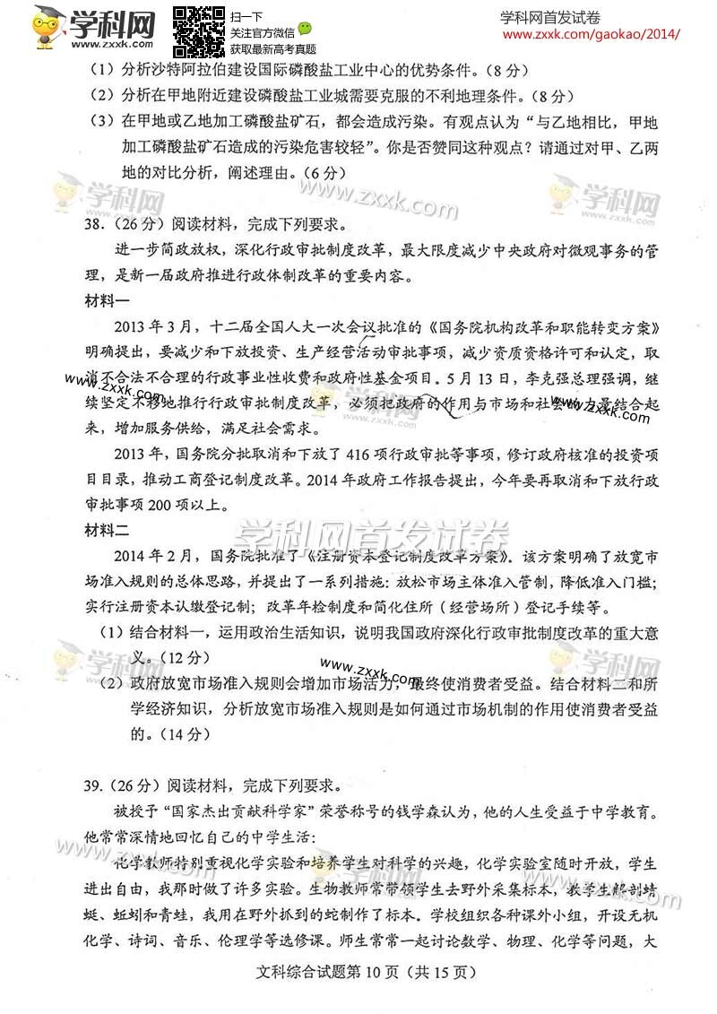2014年陕西高考文综试题及答案解析(清晰版)(10)