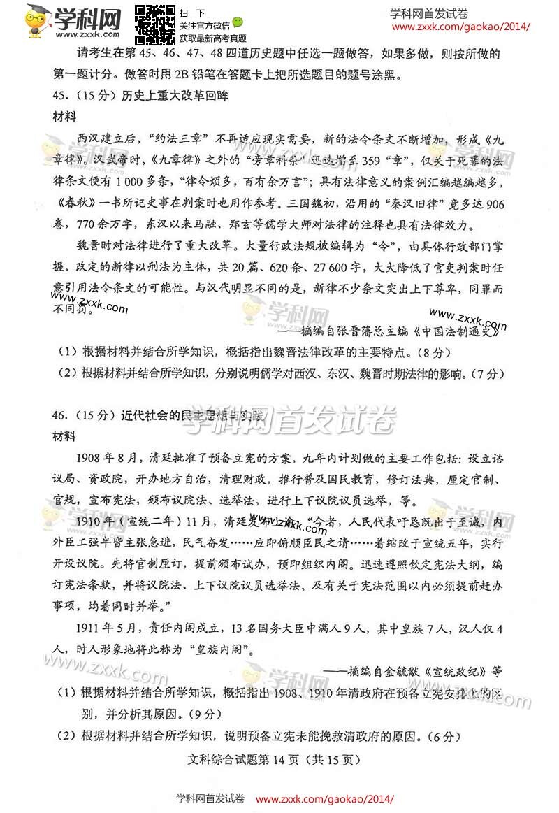 2014年陕西高考文综试题及答案解析(清晰版)(14)