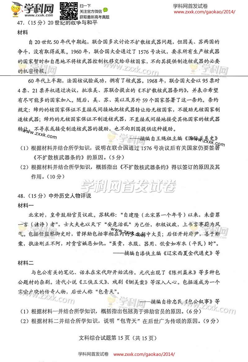 2014年陕西高考文综试题及答案解析(清晰版)(15)