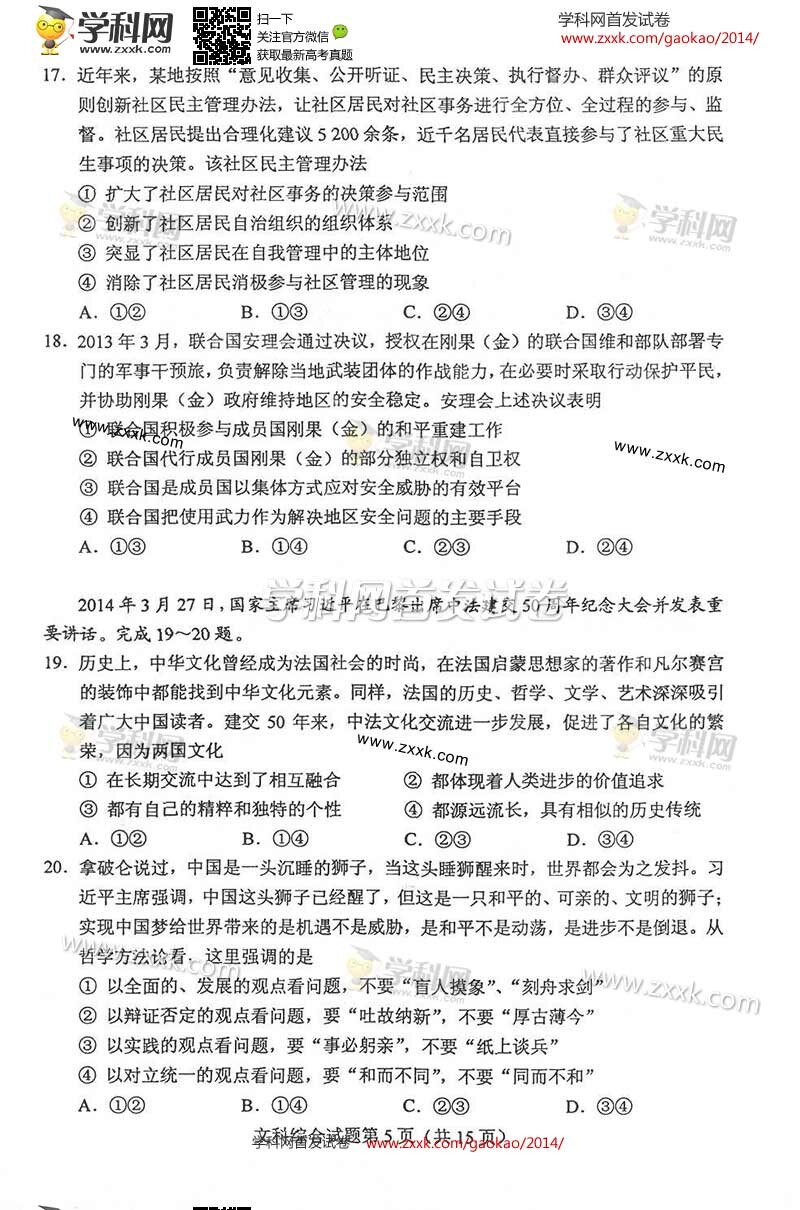2014年陕西高考文综试题及答案解析(清晰版)(5)