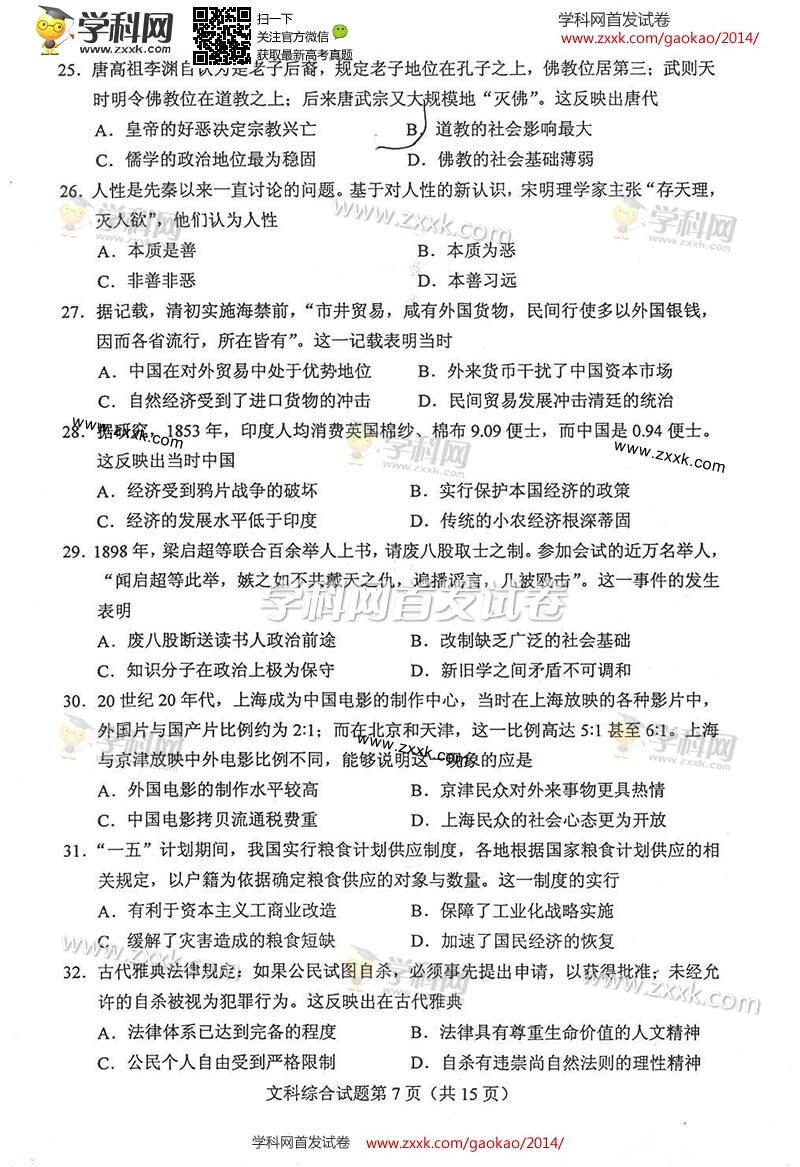 2014年陕西高考文综试题及答案解析(清晰版)(7)