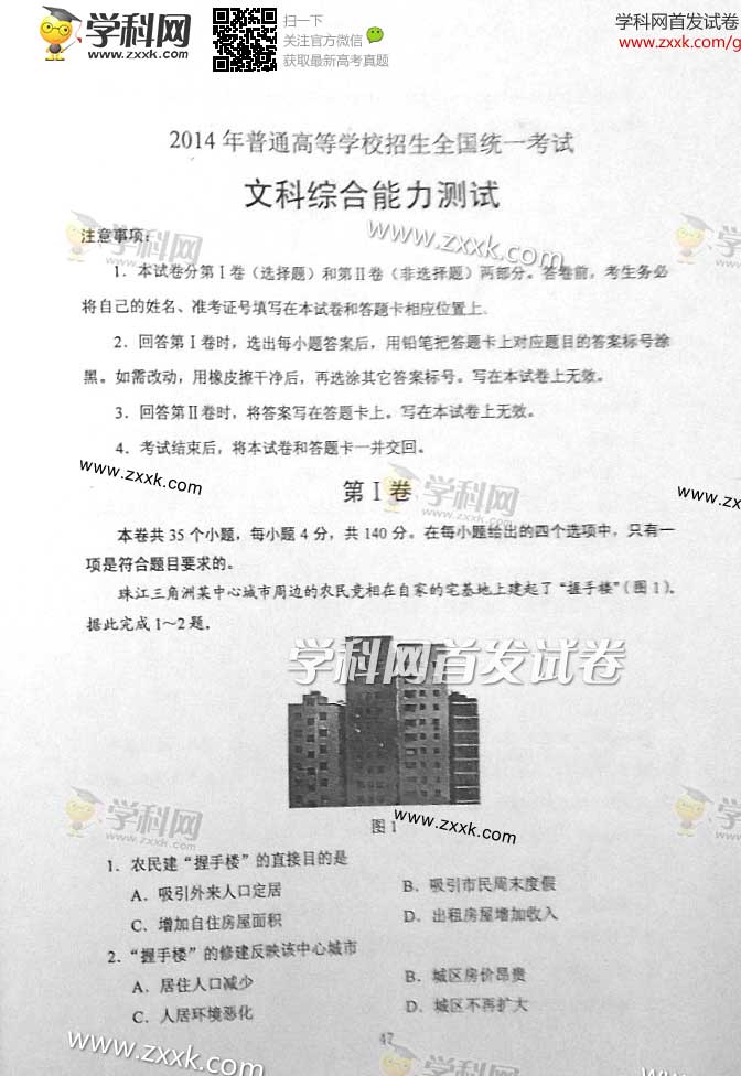 育路高考网首发2014年新疆高考文综试题及答案详细解析,为考生估分做参考,请高考生及时关注育路高考网,避免错过最新的高考信息!点击查看其他科目2014年高考试题及答案解析。