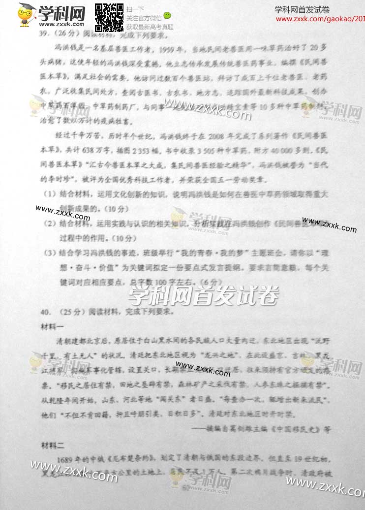 2014年新疆高考文综试题及答案解析(图片版)(12)