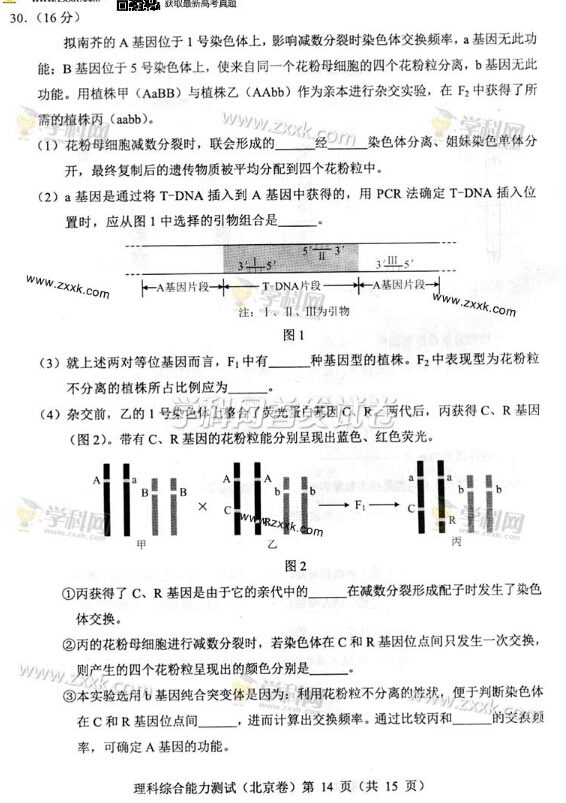 2014年高考北京卷理科综合试题及答案解析(清晰图片版)(14)