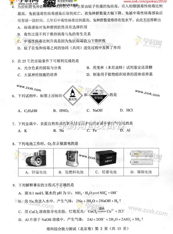 2014年高考北京卷理科综合试题及答案解析(清晰图片版)(2)