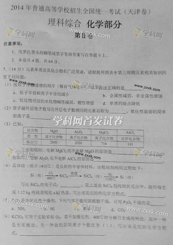 2014年高考天津理科综合试题及答案解析(图片高清版)(10)