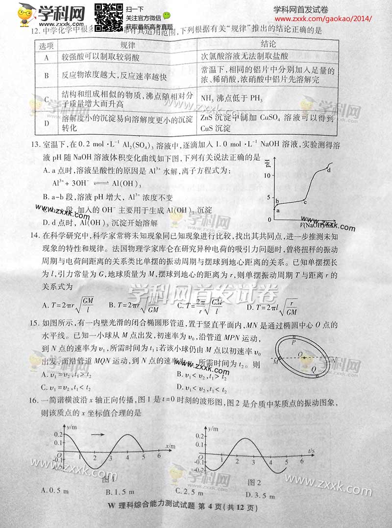 2014年高考安徽理科综合试题及答案解析(图文版)(4)