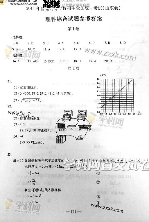2014年高考山东理科综合试题及答案(图片有答案版)(13)