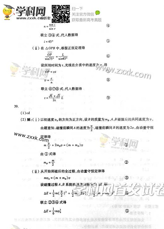 2014年高考山东理科综合试题及答案(图片有答案版)(19)