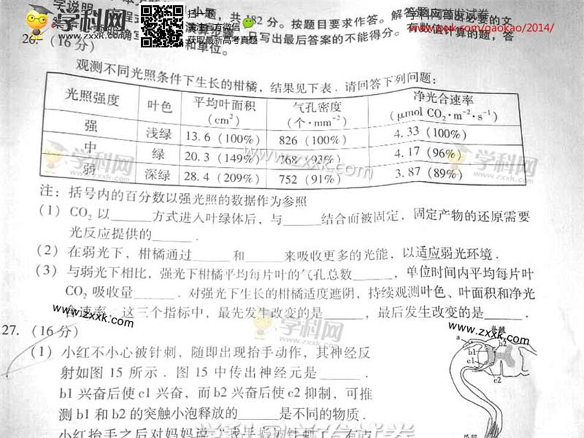 首发2014年高考广东理综试题及答案解析(清晰版)(4)