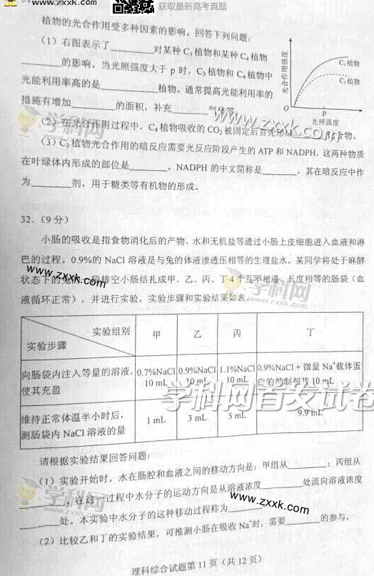 2014年广西高考理综试题及答案解析(图片清晰版)(3)