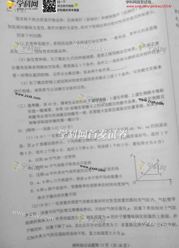 2014年高考新课标全国卷Ⅰ理综试题及答案(图片版)(13)
