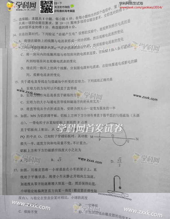 2014年高考新课标全国卷Ⅰ理综试题及答案(图片版)(3)