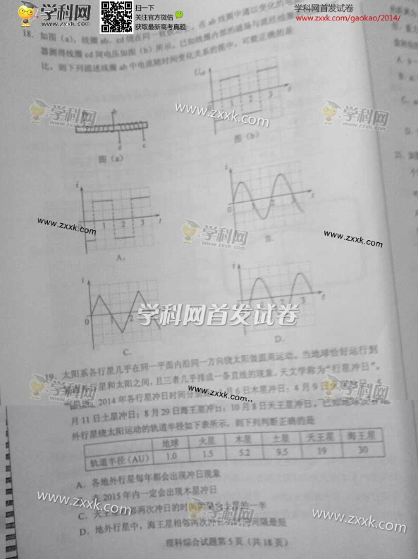 2014年高考新课标全国卷Ⅰ理综试题及答案(图片版)(5)