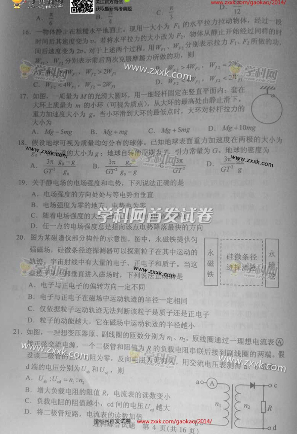 2014年高考新课标全国卷Ⅱ理综试题及答案(清晰版)(4)
