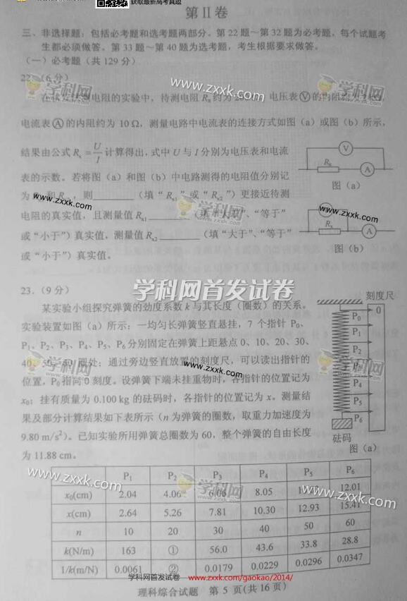 2014年高考新课标全国卷Ⅱ理综试题及答案(清晰版)(5)