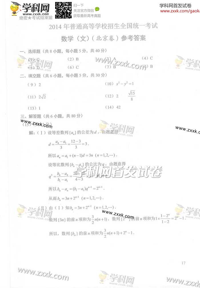 2014年北京高考文科数学真题及答案(图片版)(7)