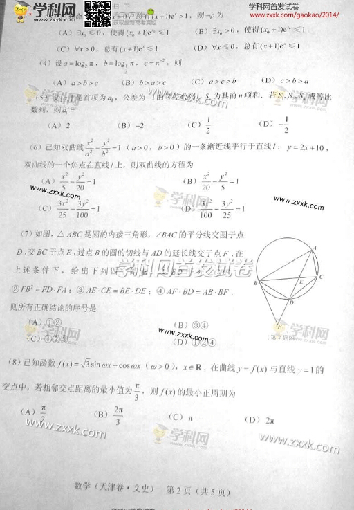 2014年天津高考文科数学真题及答案(图片版)(2)
