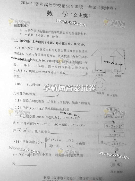 2014年天津高考文科数学真题及答案(图片版)(3)