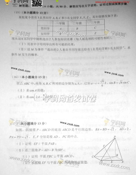 点击查看更多省份:2014年全国高考试题及答案 2014年高考成绩查询及录取控制分数线