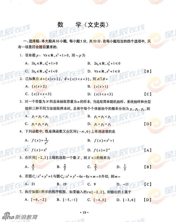 首发2014年湖南高考数学(文)真题及答案(图片版)(5)